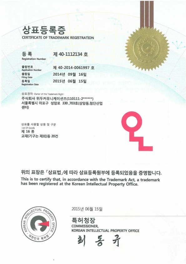 [한국/상표] OLL 16류 페이지 정보 작성자 WeDu 댓글 0건 조회 5,938회 작성일 19-05-30 18:59 본문 2015-06-15 상표 제 40-1112134호 16류 List Previous[한국/상표] OLL 41류 19.05.30 Next[한국/상표] OLL 09류 19.05.30